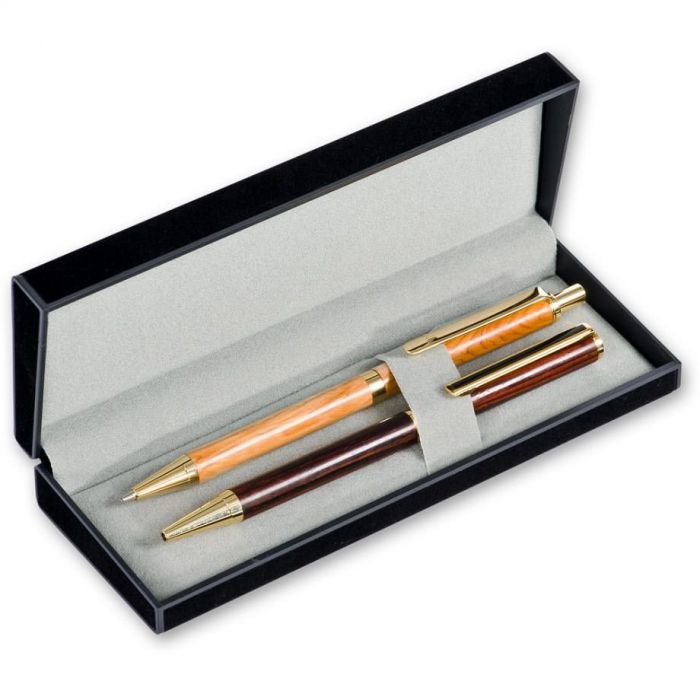 קופסא ל-2 עטים ציפוי קטיפה שחורה